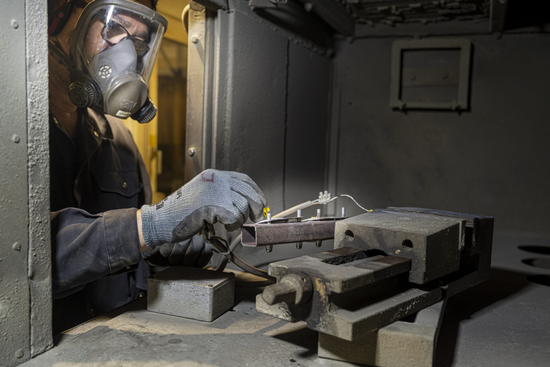 In unserem Zündraum aktivieren wir pyrotechnische Komponenten auf kontrollierte Weise. Dadurch wird die Gefährlichkeit vollständig beseitigt.